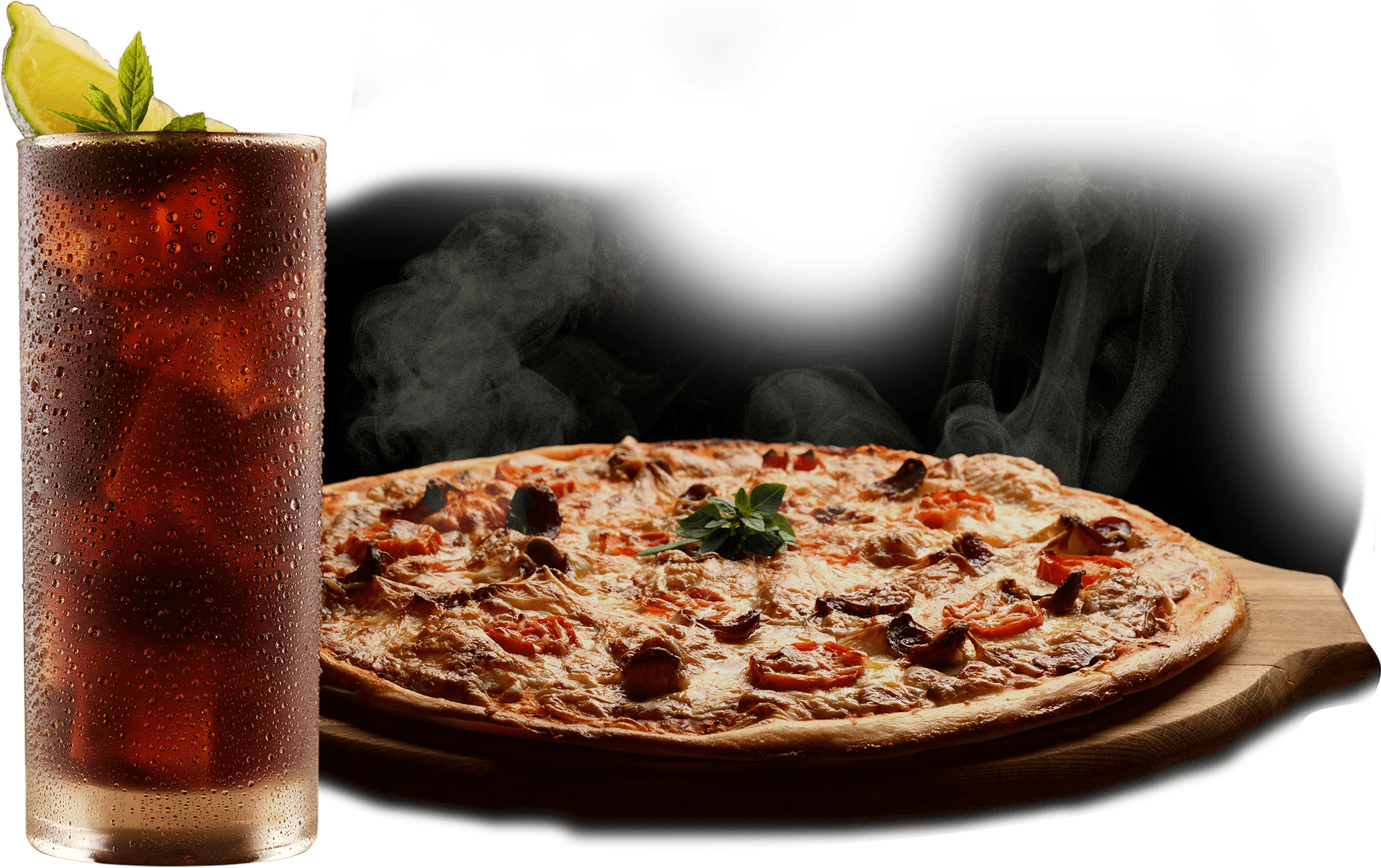 Compra una de nuestras deliciosas pizzas y recibirás un refresco gratis. Esta oferta solo está disponible de lunes a jueves.